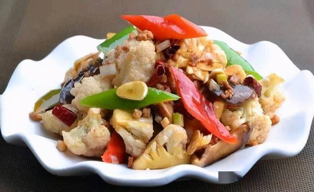 材料:花菜300克、肉末120克、甜面酱1.5调羹、生抽1调羹、料酒1调羹、醋1调羹、盐适量、糖适量、葱姜蒜适量、蒜苗2棵、干辣椒适量。