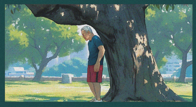 流言:老年人经常撞树锻炼可以刺激身体,达到强身健体的效果。