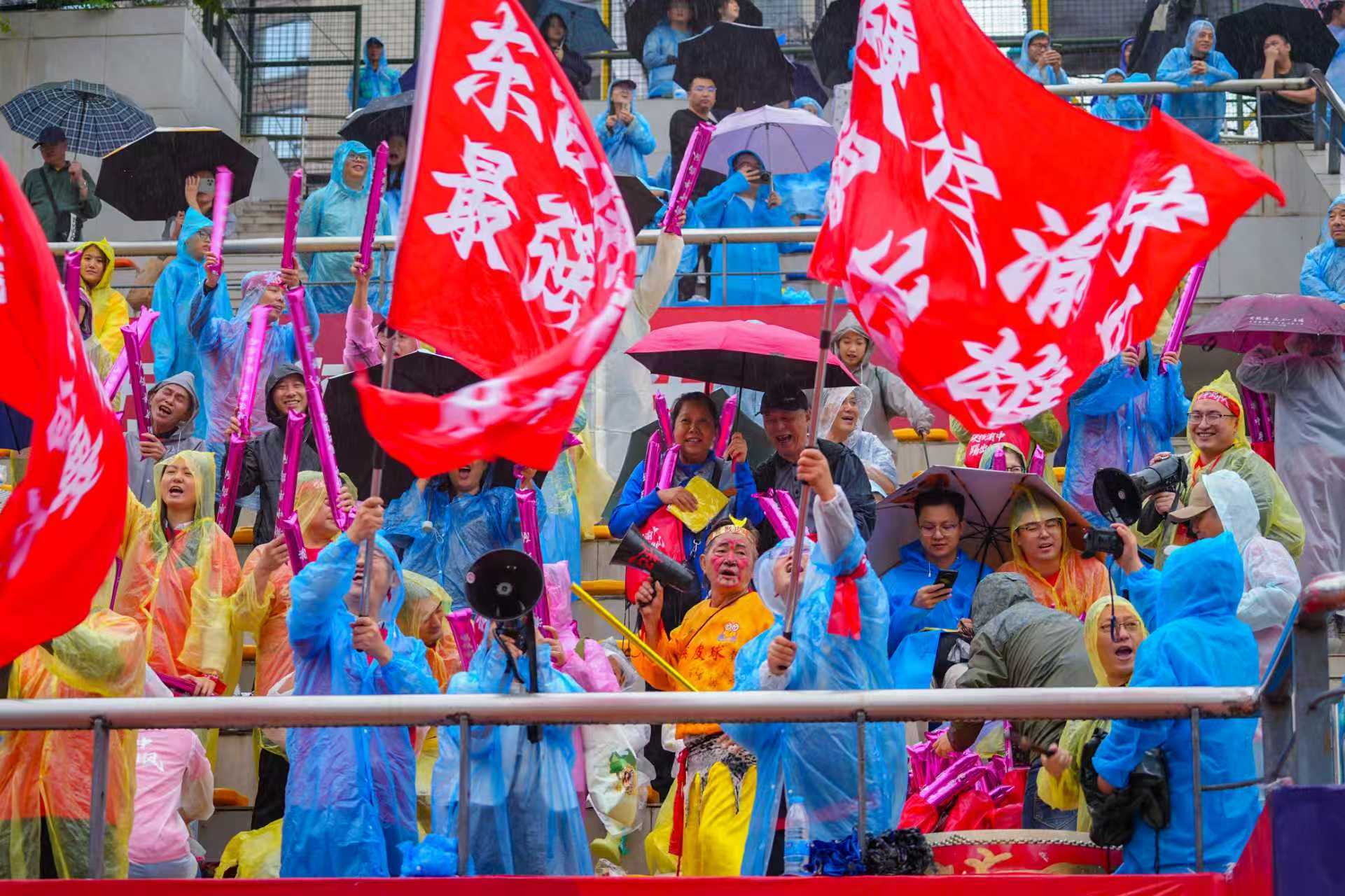 雨水估计都让她喊开了一半,她在那儿一边抹脸上的水,一边继续领喊,这架势,分明是在告诉场下的兄弟伙:“雄起,不得虚!”